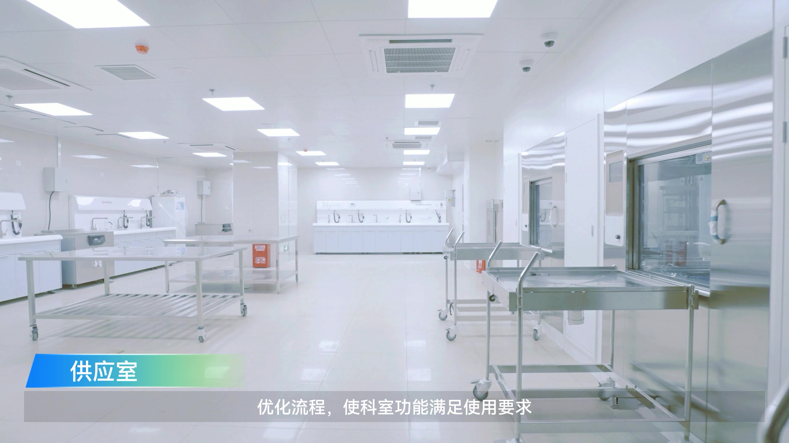 新建项目内设置有供应室、检验科、病理科等专业功能科室,各个科室均按照规范标准进行打造,不仅能够满足医院日常的使用需求,还在流程、布局及环境配套等方面进行了优化。供应室规划去污区、检查打包灭菌区、无菌物品存放区,设置清洗屏障、灭菌屏障,打造出“三区两屏障”格局。检验科设置核酸检测、HIV、微生物实验室等,基本能够满足医院所有种类的检验要求;实验室均采用全送全排的空调形式,在实验室压力梯度满足要求的同时,杜绝实验事故,保证实验安全。病理科采用变风量系统,可根据通风实验设备的开启实时调节风量,不仅能保证室内空气品质,还能有效降低能耗,节省运行成本。病理科排风采用活性碳过滤,再于屋面排放,降低污染废气对周边环境的影响。