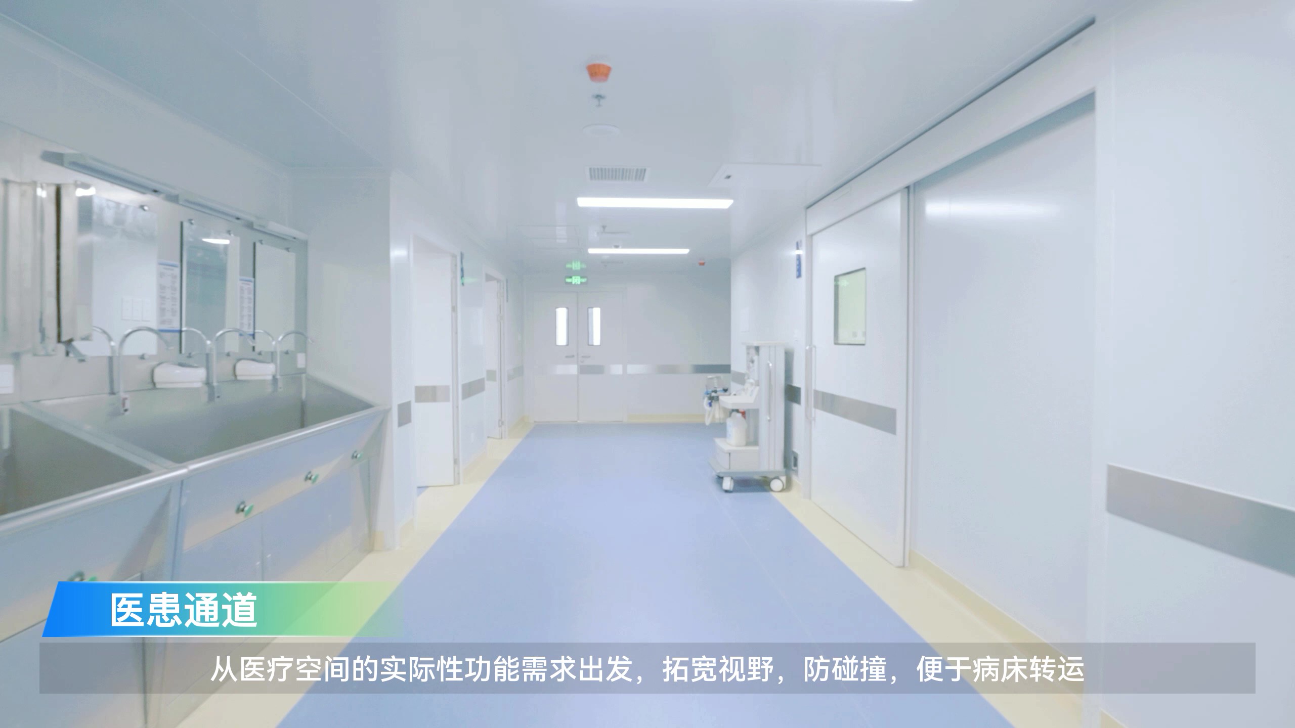 黄石五院新建项目在细节上注重人性化设计,全面考虑美观度、功能性以及舒适性的提高改进,从装饰方面来看,地面装饰选用PVC地板,具备防水、防磨、易清洗的功能优势;空间整体采用温馨、舒适的色彩搭配营造出居家感的医疗环境,优化就医体验。从功能性来看,血透室和重症监护室等科室的布局均采用“回”字型摆床设计,提高空间利用率,也方便医护对患者的观察和救治。从使用舒适性来看,医患通道视野更开阔,防碰撞,便于病床转运。手术部净化区全年冷热源采用风冷热泵,可确保手术室内全年的温湿度恒定,不受大楼空调系统影响。