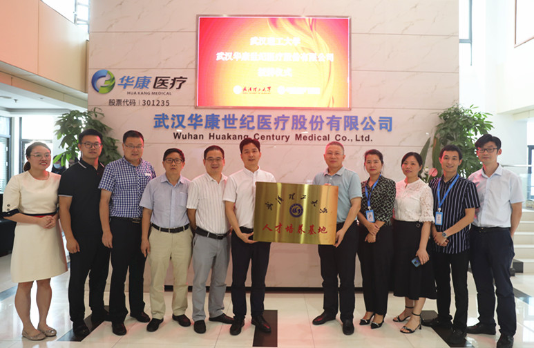 【概要描述】2022年7月6日,武汉理工大学人才培养基地授牌仪式在武汉华康世纪医疗股份有限公司总部举行。