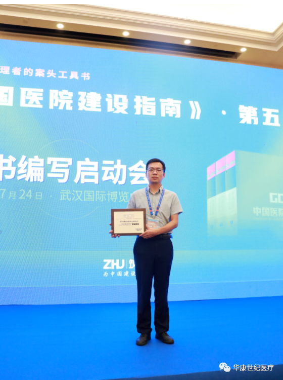 7月24日,正值CHCC2022第23届全国医院建设大会举办期间,第五版《中国医院建设指南》图书编委启动会暨讨论会同期召开,作为图书编委之一,武汉华康世纪医疗股份有限公司闫田参与启动会,与在场行业专家共同探讨图书编撰要点,提供专业意见。