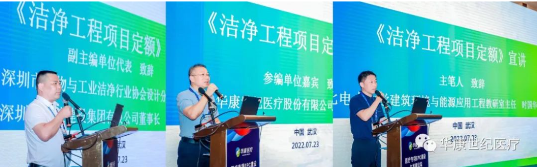 7月22日,正值第23届全国医院建设大会召开在即,由武汉华康世纪医疗股份有限公司与深圳市生物与工业洁净行业协会举办的洁净工程项目定额发布专家研讨会在武汉召开。华康医疗总经理谢新强、深圳市生物与工业洁净行业协会会长马俊杰出席研讨会。会上,专家代表对洁净工程中的项目定额标准及类别进行了深入探讨,表示要更细致、更规范洁净工程项目定额标准,以促进行业有序、健康发展。