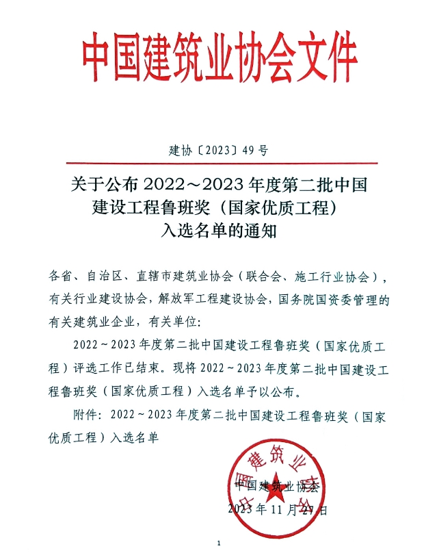 中国建设工程鲁班奖(国家优质工程),是一项由中华人民共和国住房和城乡建设部指导、中国建筑业协会实施评选的奖项,每两年评选一次,是中国建筑行业工程质量颁发的最高荣誉奖。此次荣誉获评,是行业对华康医疗匠心工艺和品质追求的又一次肯定。